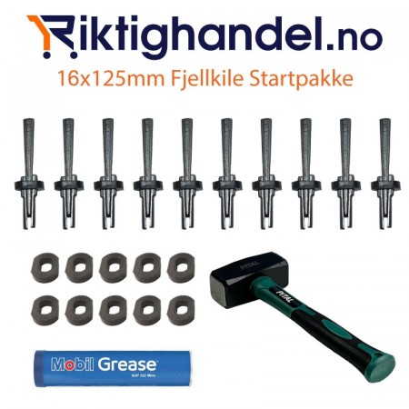Fjellkile/kilesett 34x350mm av høy kvalitet, perfekt for rask og enkel splitting av fjell, naturstein, betong, og lignende. Norges største utvalg av fjellkiler!