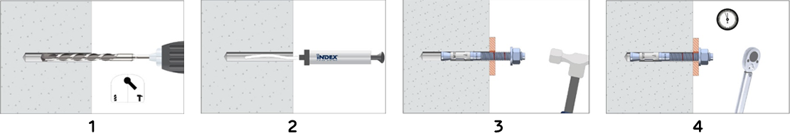 4. Stram mutteren med riktig moment. Momenttabell finner du i databladet til ekspansjonsboltene