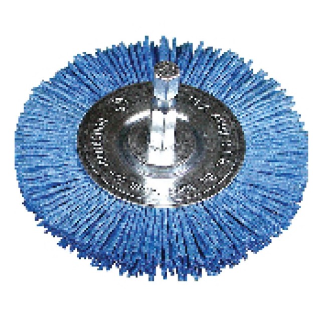 En børste i fleksibel nylon, som gjør den optimal til kontursliping. Egner seg bra til sliping, rengjøring og matting av aluminium, messing, stål og rustfritt stål, kobber og plast. Fungerer også bra til strukturering, matting og rengjøring av tre.