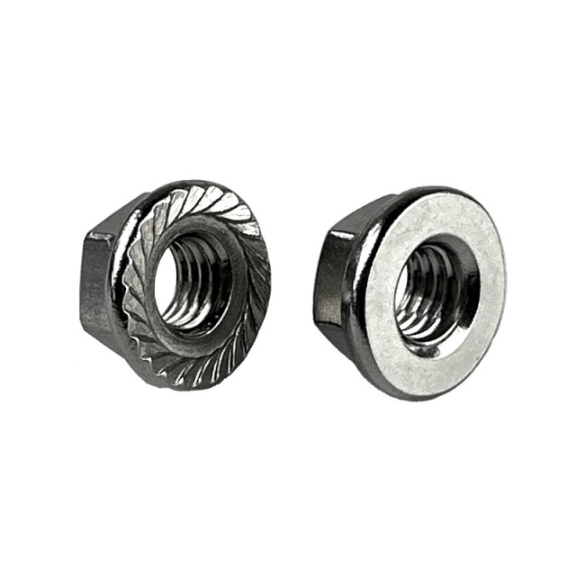 Syrefast flensmutter uten låsetenner, produsert i A4-stål. Egner seg bra i korrosive miljøer, i nærheten av kjemiske stoffer, fukt, saltvann, og lignende. Mutteren følger DIN6923/ISO4161C-standarden.