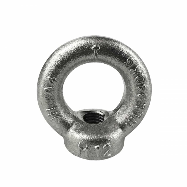 Syrefast, smidd øyemutter, produsert i A4-stål, egner seg for løfteapplikasjoner/sikkerhetsapplikasjoner, og har en WLL (tillatt arbeidsbelastning) på 230 kg. Egner seg bra i korrosive miljøer, i nærheten av kjemiske stoffer, fukt, saltvann, og lignende. Mutteren følger DIN582-standarden.