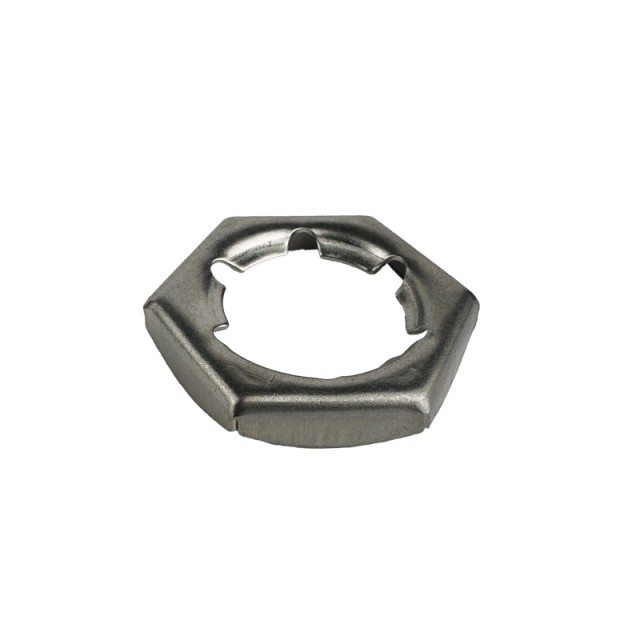 Syrefast palmutter, produsert i A4-stål, brukes som et plassbesparende alternativ i stedet for vanlig kontramutter, for å sikre at hovedmutter ikke løsner ved vibrasjoner, eller lignende. Perfekt for bruk i maskiner, industrielle applikasjoner, osv. Egner seg bra i korrosive miljøer, i nærheten av kjemiske stoffer, fukt, saltvann, og lignende. Mutteren følger DIN7967-standarden.