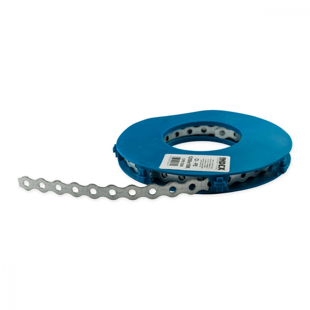 Sterkt og fleksibelt patentbånd i galvanisert stål belagt med Atlantis C2-M belegg, som gir ekstra høy korrosjonsbeskyttelse.