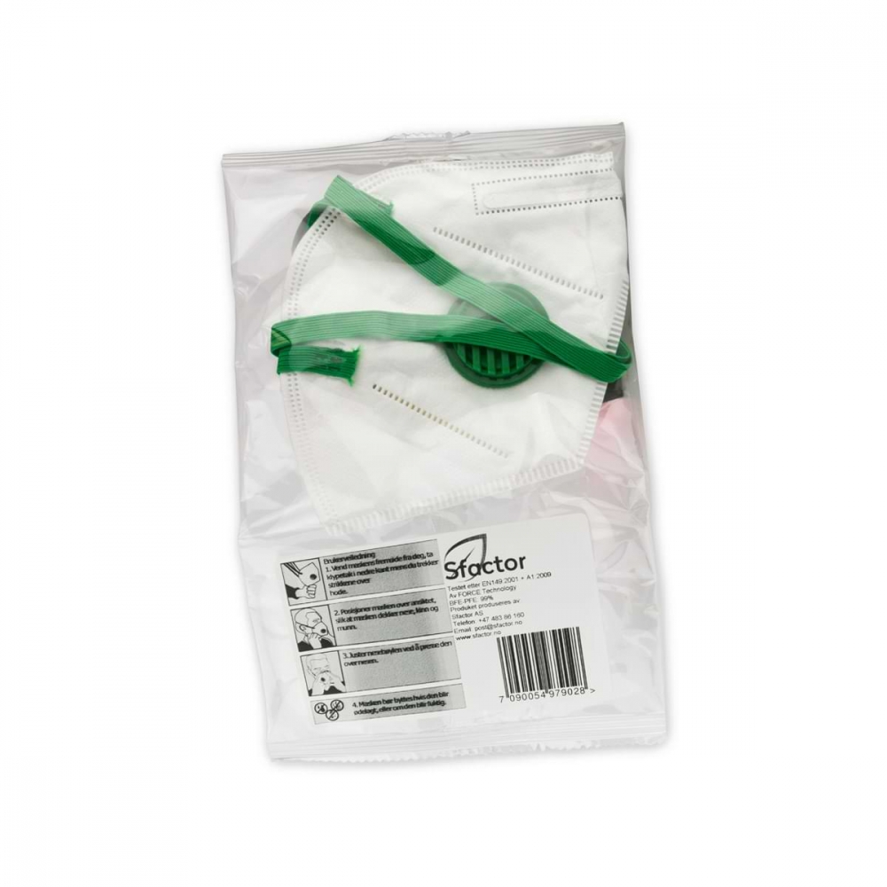 Filtrerende støvmaske som beskytter mot både grovt og fint støv i lufta, samt biologiske aerosoler som virus og bakterier. Masken er utstyrt med utåndingsventil, noe som gir lavere pustemotstand ved utpust, og reduserer varme og fukt i masken. Dette gjør den mer komfortabel ved langvarig bruk.